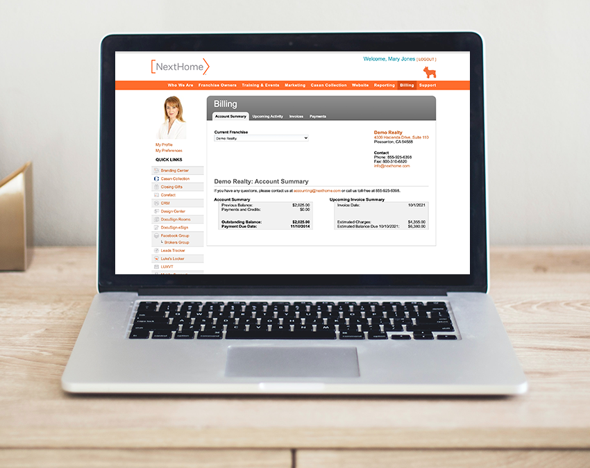 Billing Training will provide you will a complete overview of your billing per your Franchise Agreement. We will go over all things billing including how to find, read and pay your monthly invoices as well as why, when and what you are billed each month. This webinar is available to Franchise Owners only or any anyone who has been given 'Admin Assistant (with billing access)' permissions within the NextHome Intranet.